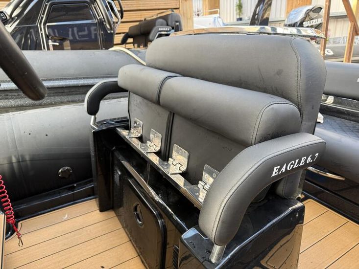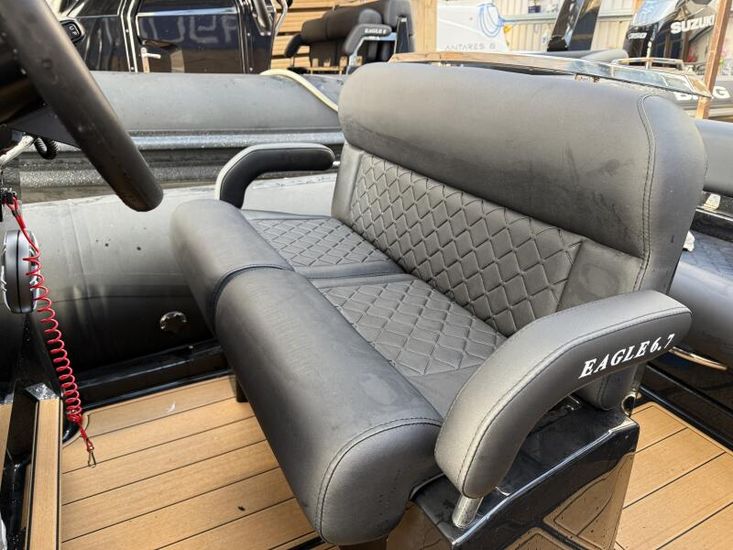 2026 Model Brig Eagle 6.7The Eagle 6.7 is fast, responsive and fuel efficient due to a slightly higher tube position. The XL-sized engine shaft widens the variety of compatible engines. Also E6.7 introduces a bunch of new options that may become a standard soon. First of all, it is the anchoring system that allows you to enjoy your trip even more. Glass console dashboard is designed to accommodate up to two 9? devices.OPTIONS FITTEDFactory T TopHydraulic steeringMarine CompassFresh water showerBow sun deck set with infill cushionConsole cover