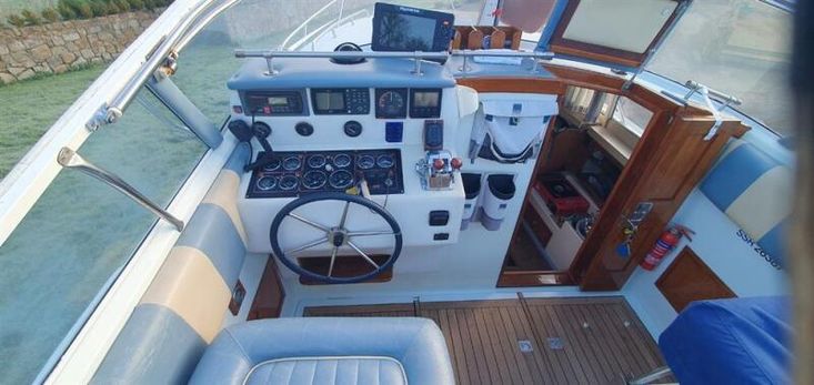 Built in 1989 and boasting classic Fairey lines, this 30ft deep-V motor yacht delivers the performance and sea-keeping for which Alan Burnard’s designs are renowned. Her twin Sabre 225hp six-cylinder diesel engines provide confident handling and strong cruising performance, while her comprehensively updated systems and recent Coppercoat antifoul ensure she is ready for many more seasons afloat.