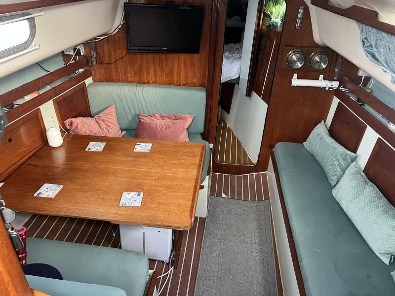 The Trapper 500 is a comfortable, all-round cruiser, designed by Canadian team of Cuthbertson and Cassian, they are easily handled for family pottering yet capable of offshore cruising/racing. She has an exterior with nice lines, which are complemented by her spacious, traditional interior, the accommodation offers up to six berths in two cabins with good headroom. this particular boat comes with a good level of equipment and is powered by a Nanni 20hp inboard diesel, she is estimated at circa 1977 build.